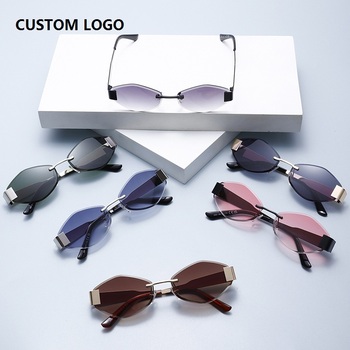 2024 gros à la mode sans monture punk métal lunettes de soleil de haute qualité logo personnalisé marque nuances noires lunettes de soleil pour hommes femmes