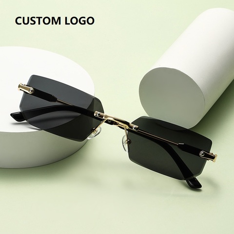 2024 nueva moda de lujo popular cuadrado rectángulo verano gafas de sol sin montura gradiente hombres mujeres vintage gafas de sol personalizadas logo